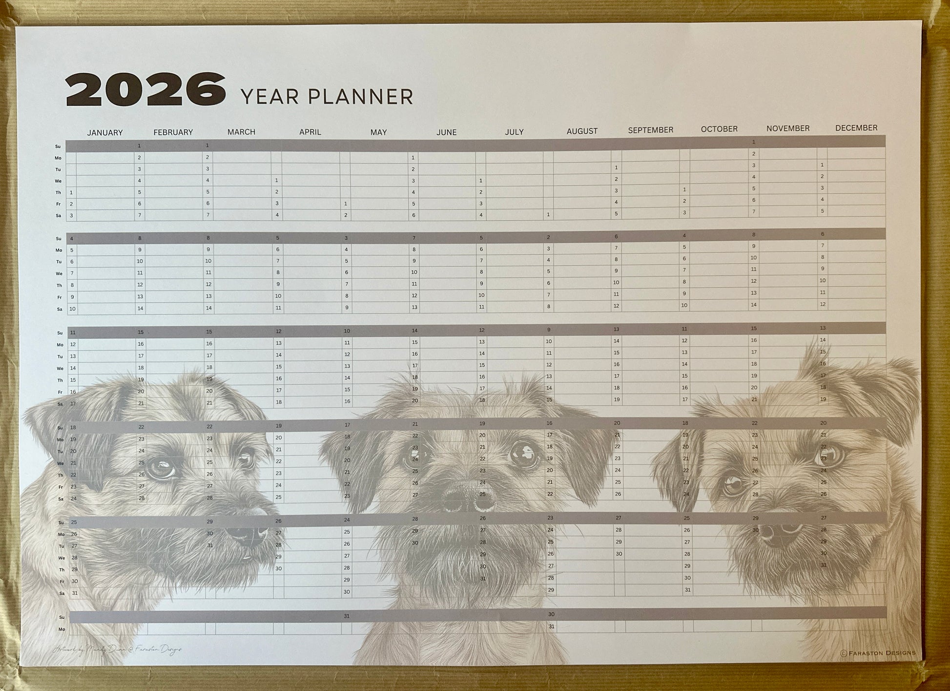 Start 2026 feeling organised and inspired with this beautiful Border Terrier wall planner. Featuring hand illustrated Border Terrier artwork and a clear month by month layout, it is both a charming display piece and a practical planning tool for busy homes and workplaces.