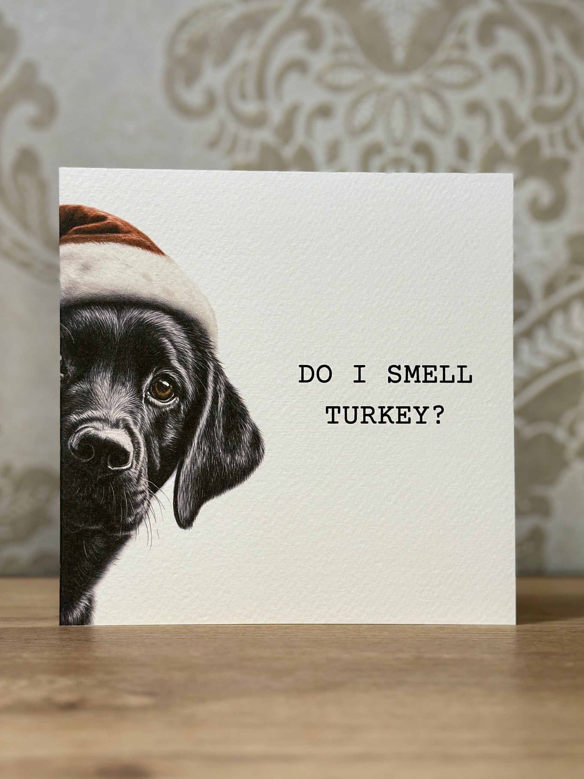 This festive card is guaranteed to raise a smile. Featuring a beautifully illustrated black Labrador in a Santa hat with the words “Do I Smell Turkey?”, it’s the perfect way to send a touch of humour and charm this Christmas.